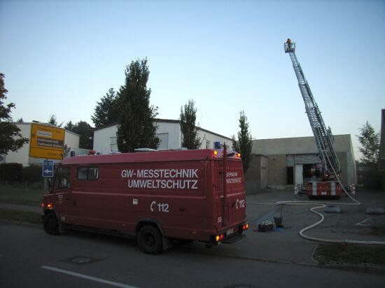 In einem Betrieb für Pulverbeschichtung war eine Maschine in Brand geraten, die für die Reinigung von Werkstücken den Stoff Tetrachlorethylen verwendet. Beim Brand entstehen giftige Gase, außerdem darf der Stoff nicht mit Wasser gelöscht werden, da die Chemikalie sonst weiter reagiert und unter anderem Salzsäure entsteht.