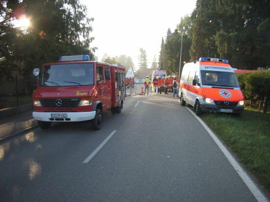Nach den unmittelbaren Maßnahmen der Feuerwehren kam ein Großaufgebot des Roten Kreuzes zum Einsatz: Jeder, der mit den giftigen Wolken in Kontakt gekommen war, wurde an Ort und Stelle an einem schnell eingerichteten Behandlungsplatz untersucht.