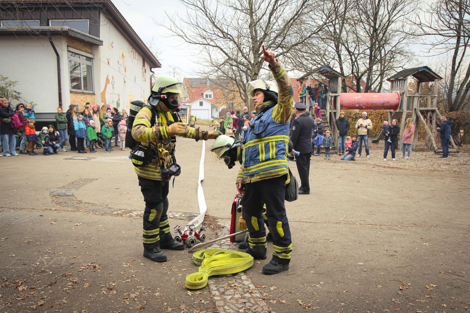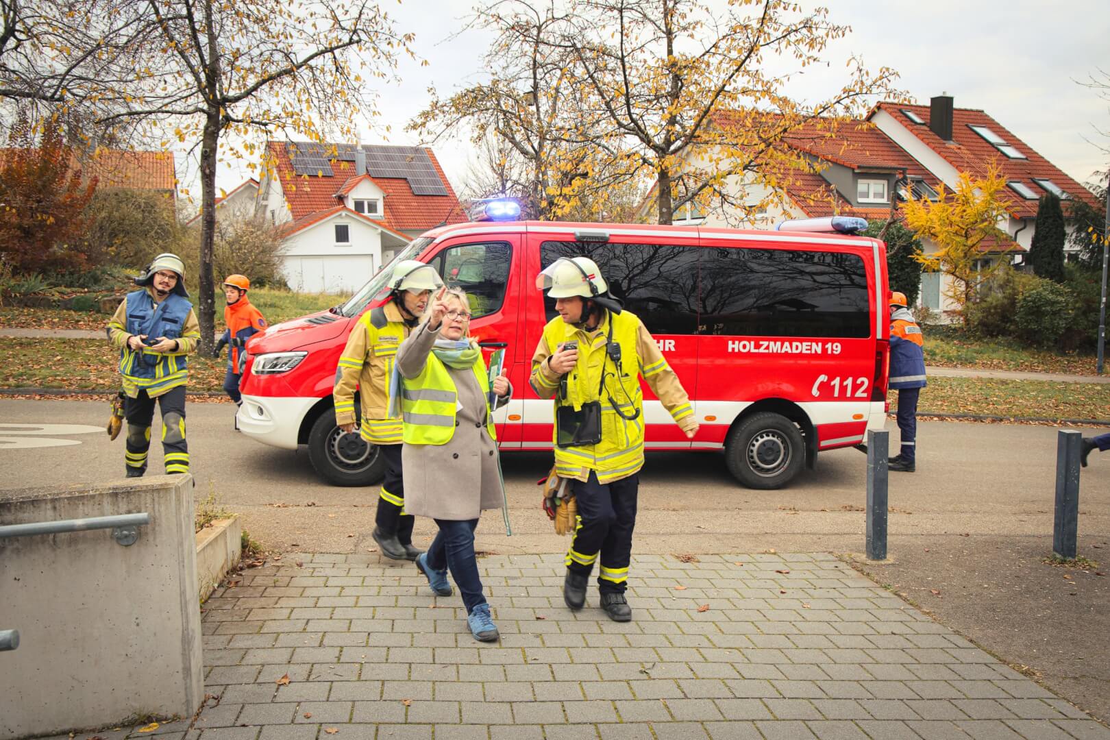 „Brand im 1. OG in der Grundschule, zwei Personen vermisst“ – Mit diesem knappen Stichwort alarmierte die Integrierte Leitstelle Esslingen die Freiwillige Feuerwehr Holzmaden am Samstag, 8. November 2025 zur diesjährigen Hauptübung. Zahlreiche Zuschauerinnen und Zuschauer verfolgten das realitätsnahe Einsatzszenario, bei dem die Wehr eindrucksvoll ihr Können und die Anwendung der Ausrüstung unter Beweis stellte.