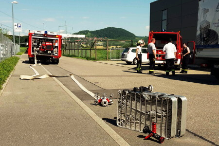 In einer Produktionshalle in der Albstraße geriet eine Deckenleuchte in Brand. Bis zum Eintreffen der Feuerwehr konnte diese von den anwesenden Mitarbeitern selbst gelöscht werden. Als besonders hilfreich für das schnelle Auffinden des Brandobjekts gestaltete sich die Einweisung der Einsatzfahrzeuge durch zwei der Mitarbeiter. Diese machten am Straßenrand deutlich auf sich aufmerksam und wiesen den Weg zum entsprechenden Gebäude. Die Feuerwehr stellte im Anschluss die Stromversorgung zur Leuchte ab und kontrollierte das defekte Gerät per Wärmebildkamera. Die ebenfalls alarmierten Kräfte der Freiwilligen Feuerwehr Weilheim/Teck konnten ihre Anfahrt zur Einsatzstelle abbrechen. Vor Ort war die Feuerwehr Holzmaden mit zwei Einsatzfahrzeugen und neun Einsatzkräften tätig, weitere vier Einsatzkräfte standen im Feuerwehrhaus in Bereitschaft.