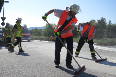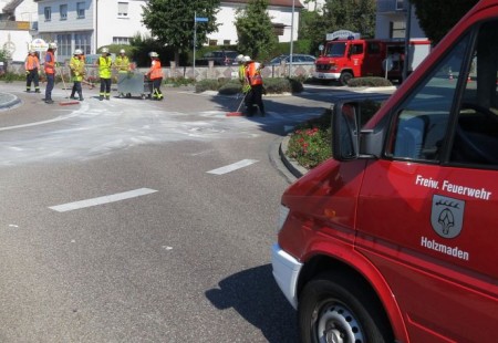Die Einsatzkräfte der Feuerwehr Holzmaden waren mit zwei Fahrzeugen zur Reinigung der Fahrbahn im Einsatz, zudem war die Polizei vor Ort.