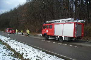 Erneut war eine Ölspur der Grund für einen Einsatz. Gegen 13.30 Uhr wurde die Feuerwehr am 30.11.12 auf die Landesstraße 1200 alarmiert, wo die Fahrbahnverschmutzung von Weilheim kommend Richtung Jesingen zu beseitigen war. Im Einsatz waren 8 Kräfte mit zwei Fahrzeugen.