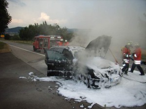 Zu einem PKW Brand am Ortseingang wurde die Holzmadener Feuerwehr am Freitag Abend gerufen.